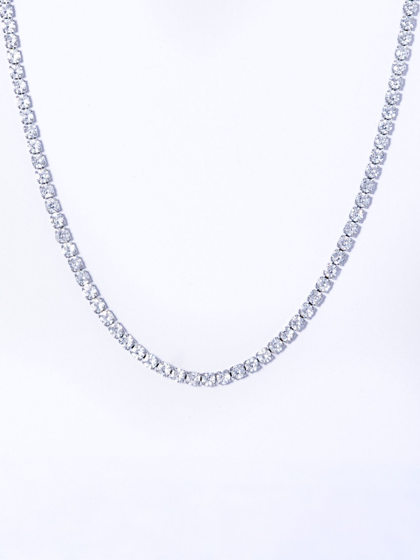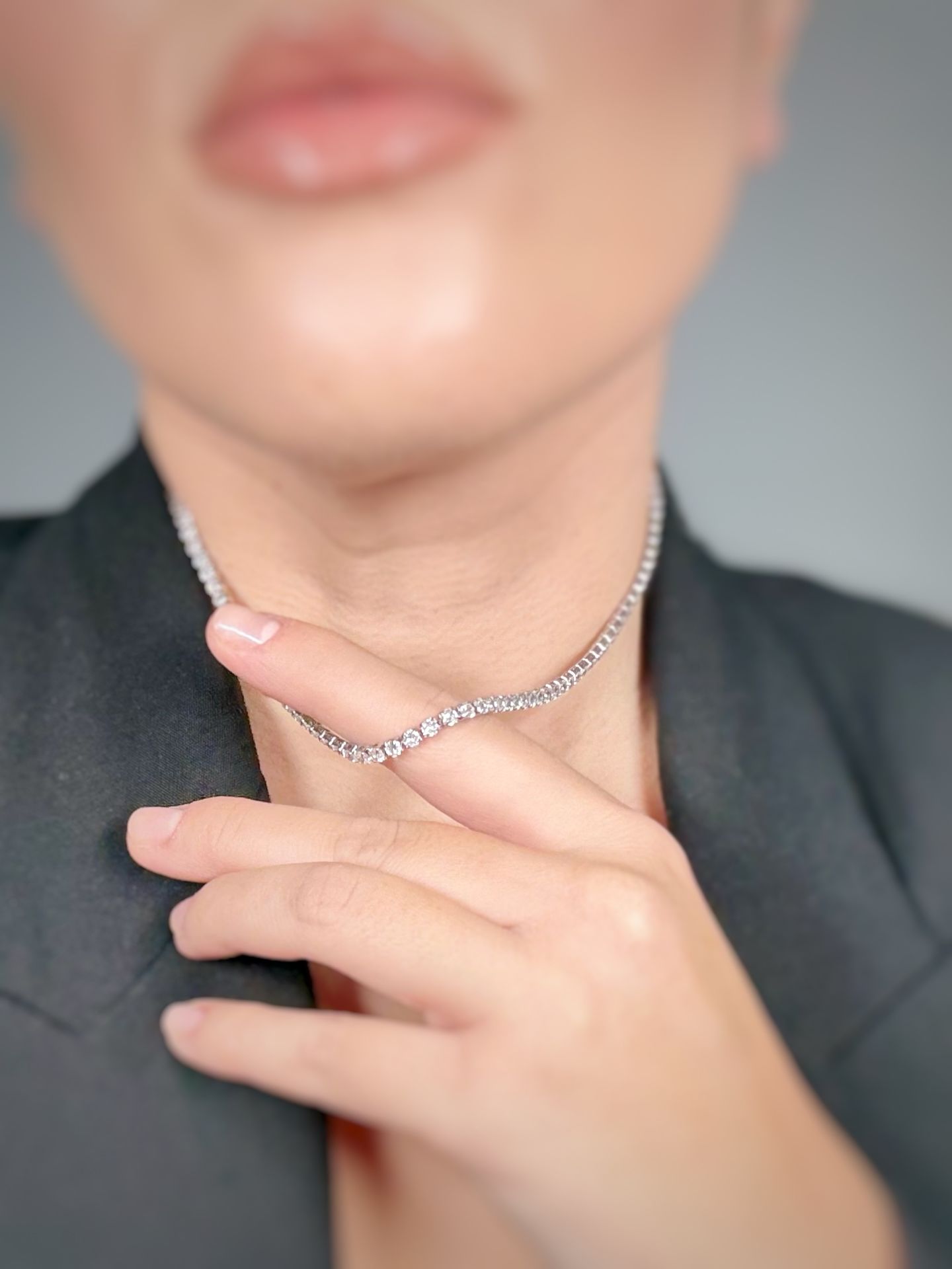 Διαχρονικό κολιέ tennis, στολισμένο με εκθαμβωτικά ζιργκόν που προσδίδουν κομψή λάμψη σε κάθε εμφάνιση. Κατασκευασμένο από υποαλλεργικό ατσάλι, είναι ανθεκτικό και φιλικό προς το δέρμα, ιδανικό για καθημερινή χρήση ή ιδιαίτερες περιστάσεις. Ένα κομμάτι που συνδυάζει minimal πολυτέλεια και διαχρονικό στυλ, ολοκληρώνοντας κάθε look με διακριτική λάμψη.