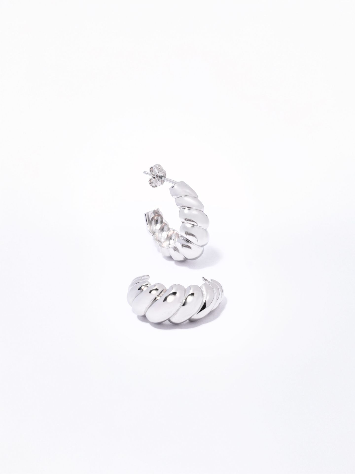 Ανακάλυψε τους statement κρίκους που συνδυάζουν τη ρομαντική αύρα του παριζιάνικου vintage στυλ με τη μοντέρνα αισθητική. Σχεδιασμένοι να θυμίζουν τη χαρακτηριστική καμπύλη ενός κρουασάν, αυτοί οι εντυπωσιακοί κρίκοι από ασήμι 925 είναι ανάλαφροι, εξαιρετικά άνετοι και ιδανικοί για κάθε στιγμή της ημέρας.