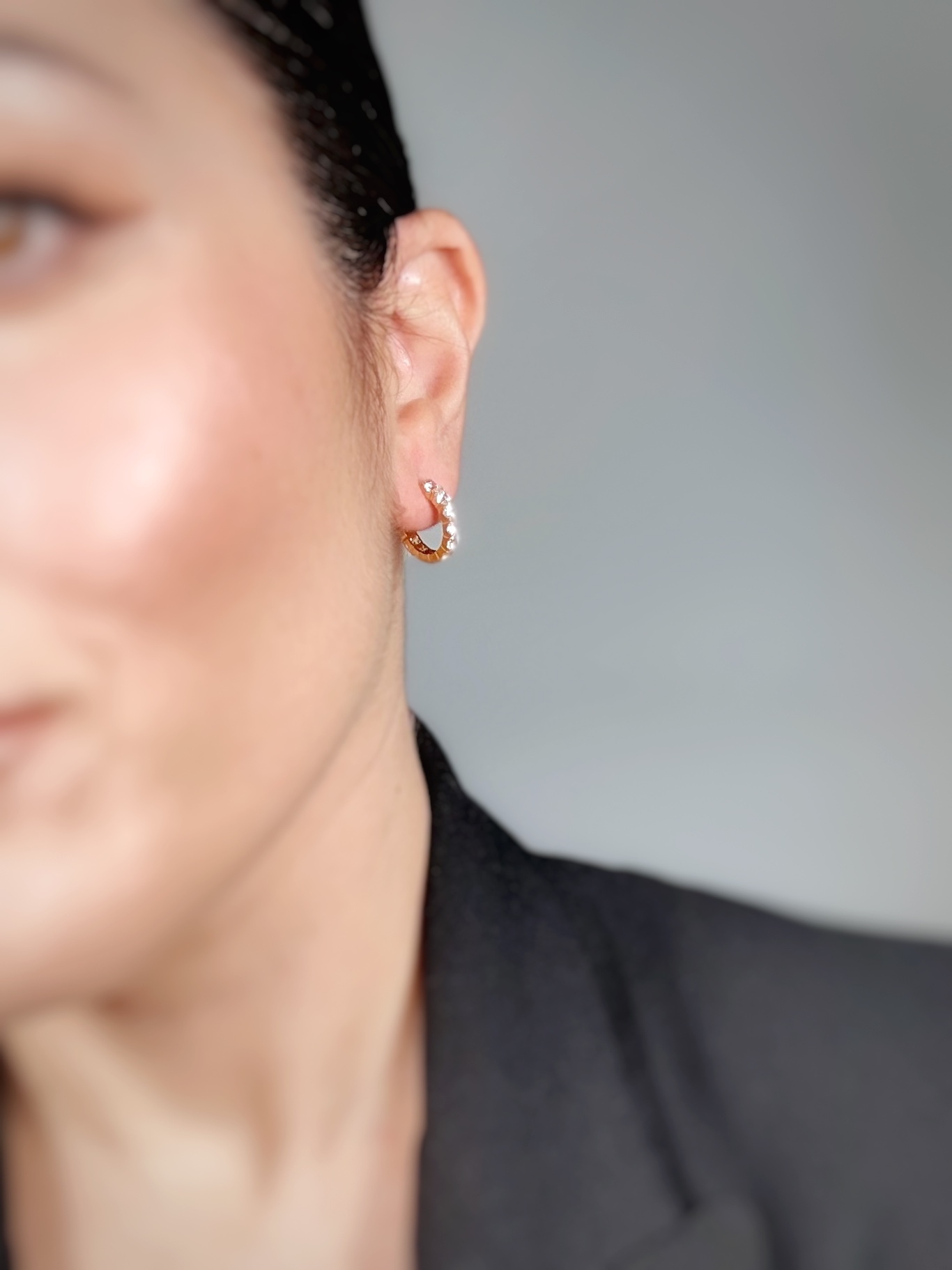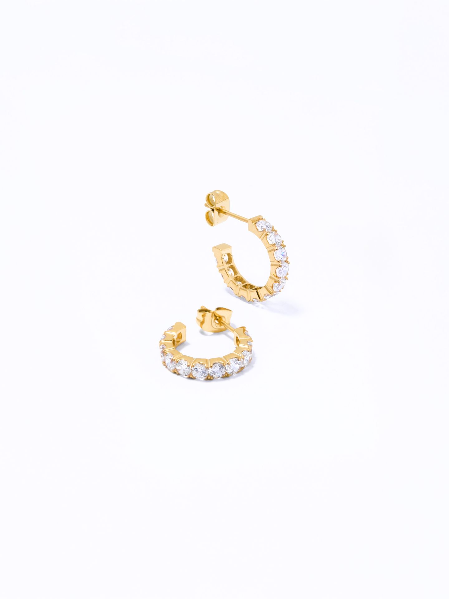 Κομψό σκουλαρίκι κρίκος διακοσμημένο με λαμπερό ζιργκόν που χαρίζει διακριτική λάμψη σε κάθε εμφάνιση.