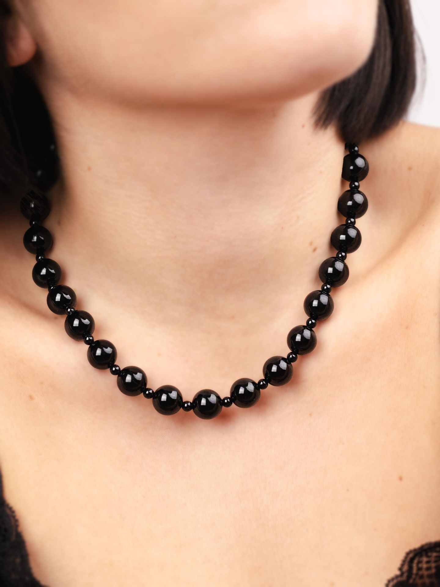 Ένα κομψό και διαχρονικό κολιέ από φυσικό μαύρο όνυχα, ολοκληρωμένο με διακριτικό ασημένιο κούμπωμα 925. Ο μαύρος όνυχας, γνωστός για τις προστατευτικές του ιδιότητες, λέγεται ότι ενισχύει τη δύναμη, την αυτοπεποίθηση και βοηθά στην απορρόφηση της αρνητικής ενέργειας. Με τη βαθιά μαύρη του απόχρωση και την απλή γραμμή του σχεδίου, αυτό το κόσμημα αποτελεί ιδανική επιλογή για καθημερινή χρήση αλλά και για πιο ιδιαίτερες περιστάσεις.